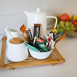 There are an adjoining terrace and a balcony furnished with a sofa set and a work desk and equipped with comforts like ironing facilities and an air conditioner. For added convenience, the apartment features high-speed internet and a cable satellite TV, ensuring guests can unwind during their leisure hours. Also, the property comes with a separate toilet and a shower in the bathroom. Furthermore, a hair dryer, free toiletries, and bath sheets is available.
